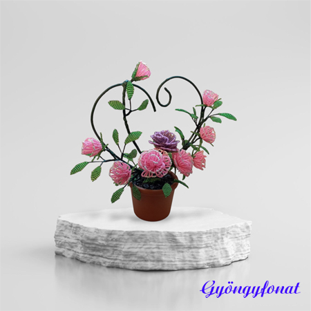 és zöld színű kásagyöngyből fűztem, majd egy pink színű fém vödörbe