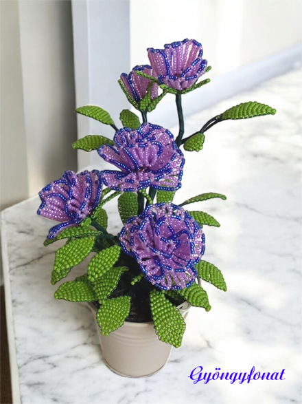 Ehhez a kedves kis asztaldíszhez a virágokat 2 mm-es fehér, arany, lila