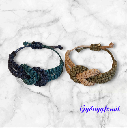 Makramé technikával készítettem ezeket a karkötőket, melyeknek mintás